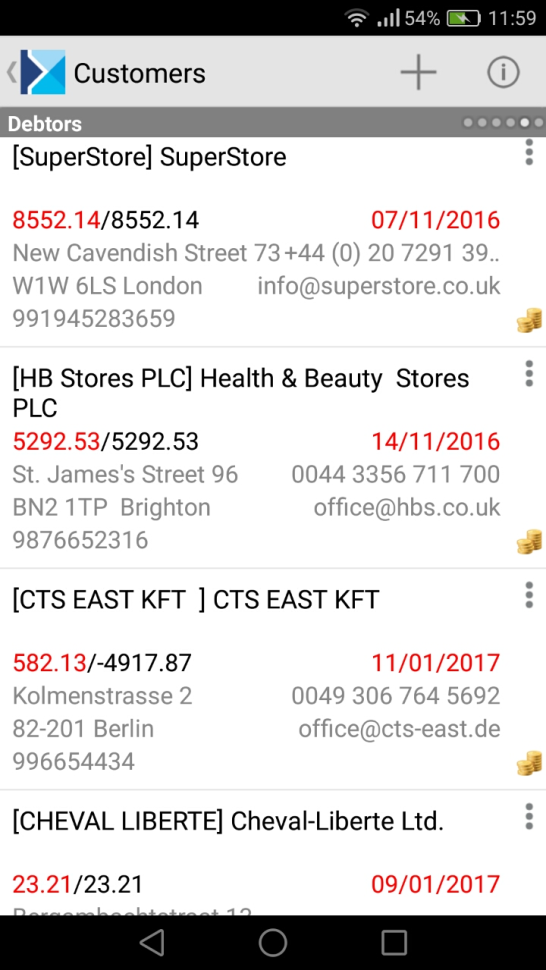 A sales representative has access to real-time data concerning a customer’s defined credit limit and actual status, in order to prevent this limit being exceeded. Depending on the settings defined in the Comarch ERP Altum system, the application can inform the representative about overdue payments,  trigger a warning or block confirmation of a transaction which exceeds fixed credit limits.