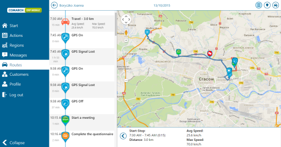 From the point of view of the management staff, it is important to be able to track the routes traveled by sales representatives. Managers who are directly responsible for given employees may conveniently track the routes they travelled, using Comarch Mobile Management.